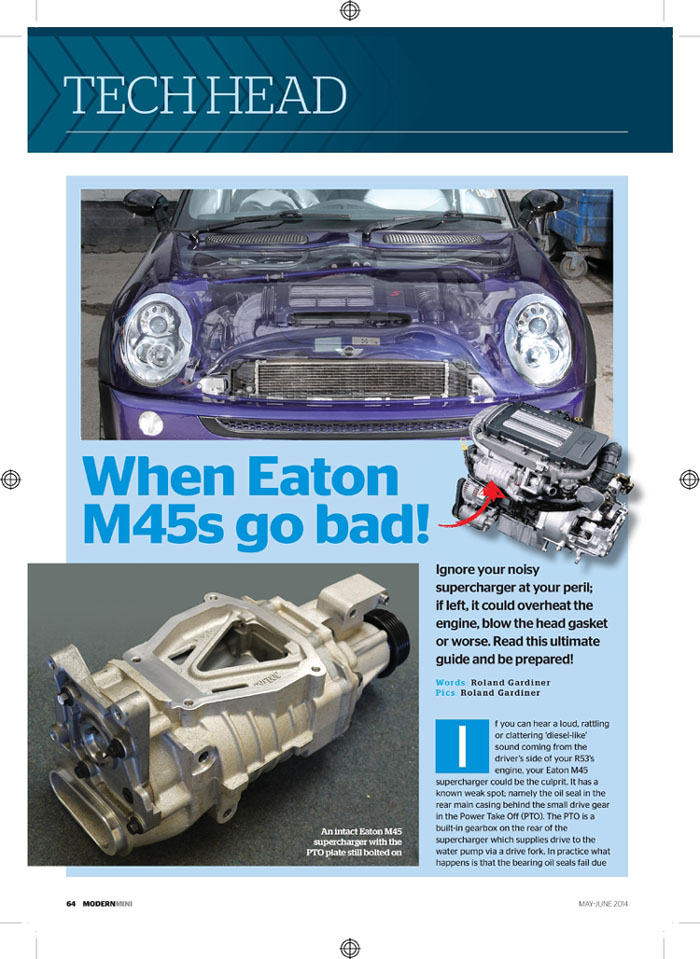 The Ultimate guide to a Supercharger rebuild written by GTT’s very own Roland Gardiner and featured in modern mini magazine May – June 2014 , click When Eaton M45’s go bad! to view it in your pdf reader.